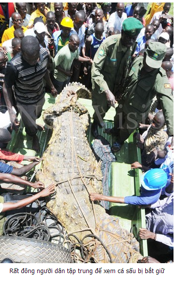 Bắt được cá sấu khổng lồ nặng gần 1 tấnMột con cá sấu có khối lượng gần 1 tấn và được tin là từng ăn thịt ít nhất 4 ngư dân đã bị bắt giữ tại hồ Victoria ở Uganda. Đây được xem là con cá sấu “khủng” nhất còn sống được biết đến.