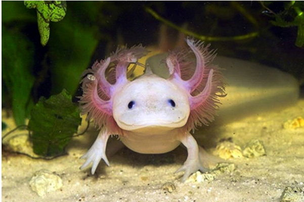 Thường được gọi là “khủng long 6 sừng”, loài kỳ giông axolotl có nguồn gốc Mexico là một trong những loài động vật thủy sinh kỳ dị nhất thế giới. Chúng vừa sống dưới nước, hô hấp bằng mang nhưng cũng vừa đi lại trên cạn và thở bằng phổi (vì vậy ở Việt Nam còn được gọi là cá phổi). Thực chất 6 chiếc “sừng” của chúng là những chiếc mang lông mọc dài ra ngoài. Thời gian gần đây, loài giông này được nhập từ Trung Quốc về Việt Nam, trưng bày như một loại cá cảnh. Điều đáng nói, trước khi về Việt Nam những con vật lưỡng cư nhỏ bé này bị tiêm hóa chất, phẩm màu vào người khiến chúng có tới 4 màu sắc khác nhau. Theo tiết lộ của người bán, sau chừng 1 năm, màu sắc trên người chúng sẽ bay mất, và có thể sẽ trở về màu sắc nguyên bản là màu trắng hồng toàn thân. Sở hữu một cái mồm rộng ngoác, con vật lúc nào trông cũng như đang cười